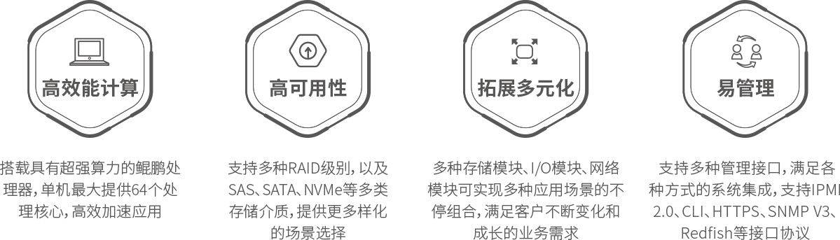 韦德国际1946 KunTai R721高密服务器是神州数码基于鲲鹏基础硬件推出的新一代高密度计算设备。其具备高效能计算、安全可靠与开放生态优势。